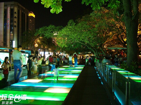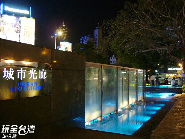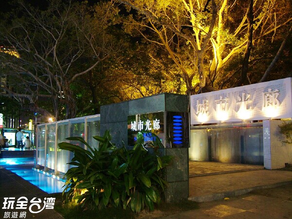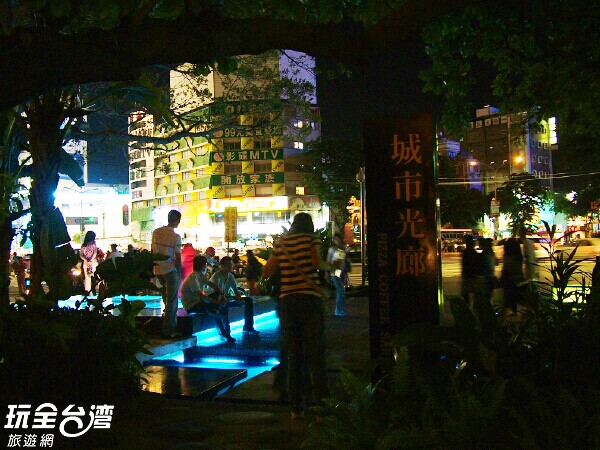 城市光廊位於中山路和中華路之間的五福路,每到了晚上城市光廊總是彌漫著一份炫麗又浪漫的藝術氣息,色彩繽紛的燈光、寬敞閒適的空間、悠閒的露天咖啡雅座再加上慵懶的爵士樂,讓忙碌的高雄都會瞬間悠閒了下來。