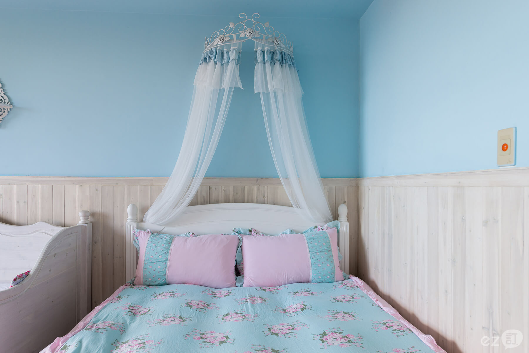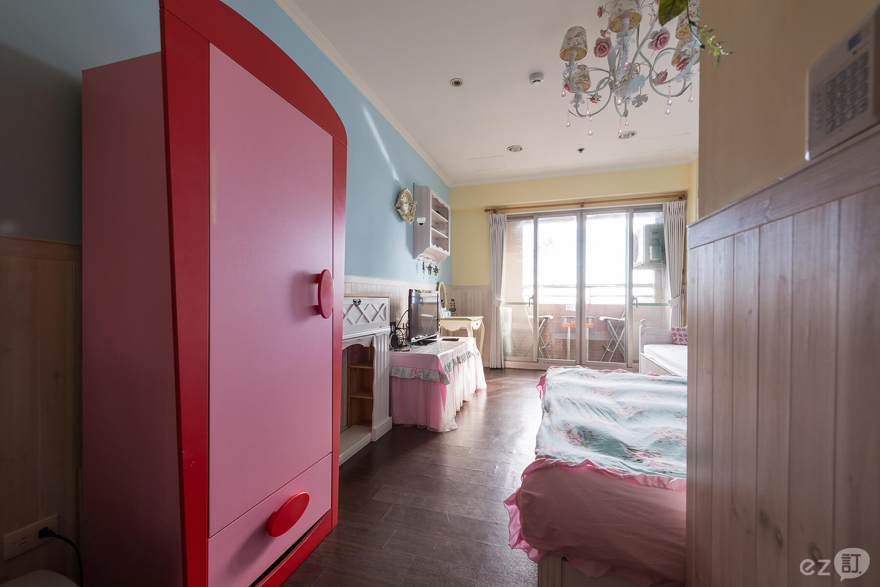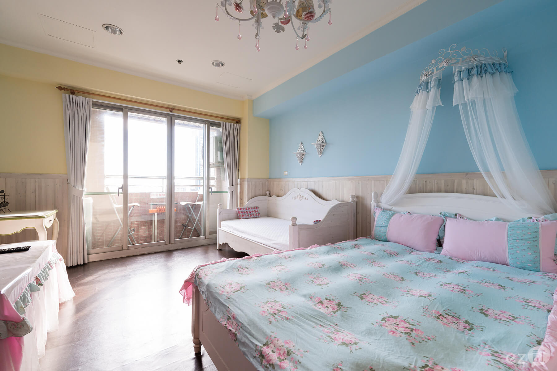 ◇ ◆設計主題以鄉村風格木作為主,水晶玫瑰的大吊燈,玫瑰的床單,玫瑰公主皇冠架+米果自製的紗簾超夢幻的喔~