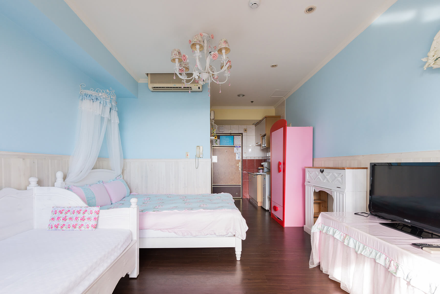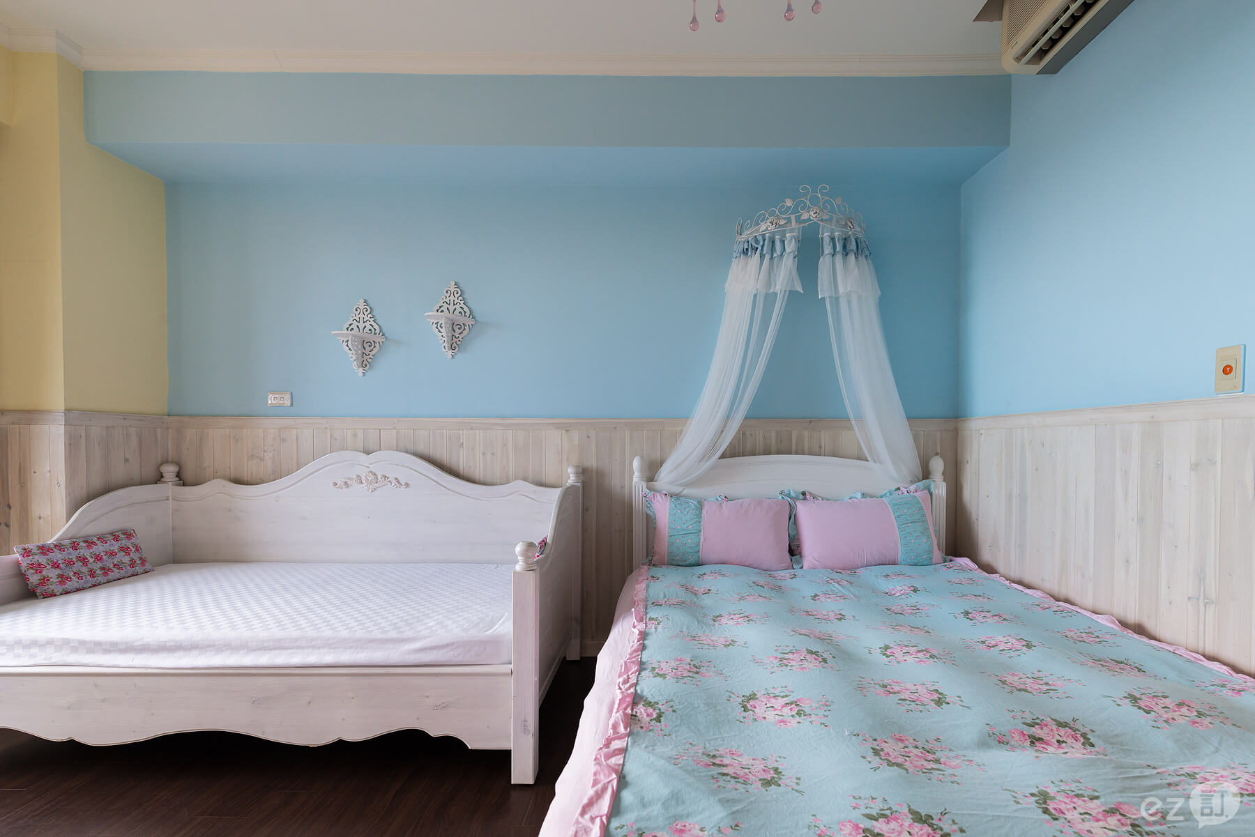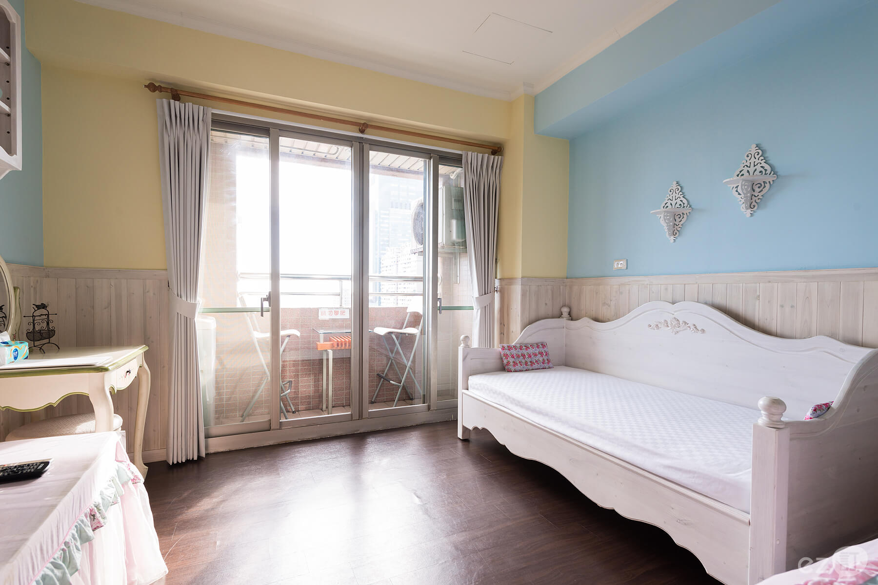 ◇ ◆設計主題以鄉村風格木作為主,水晶玫瑰的大吊燈,玫瑰的床單,玫瑰公主皇冠架+米果自製的紗簾超夢幻的喔~