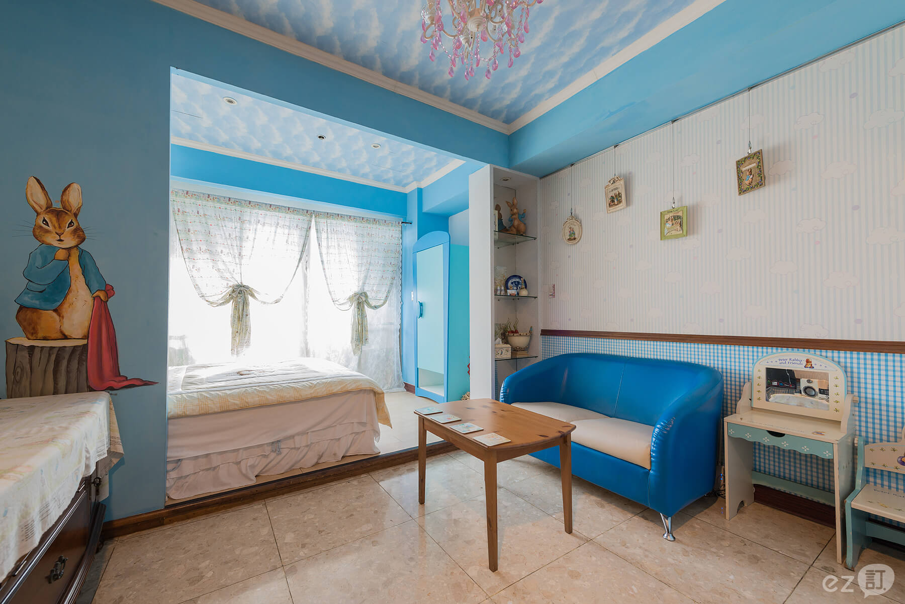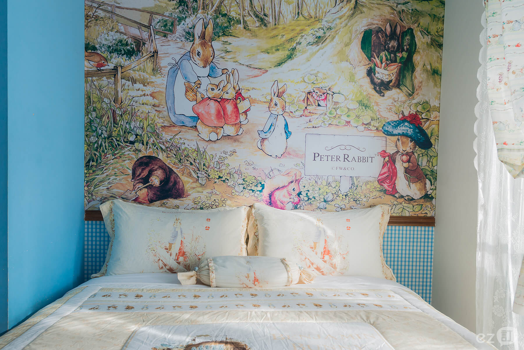 ◇ ◆米果以彼得兔為設計主題~加入了日本進口的彼得兔化妝台~天花板上都是藍白色的雲朵~日系彼得兔的馬克杯和花茶組~連床單都是超高價位的彼得兔寢具~兔迷朋友們一定要來體驗~